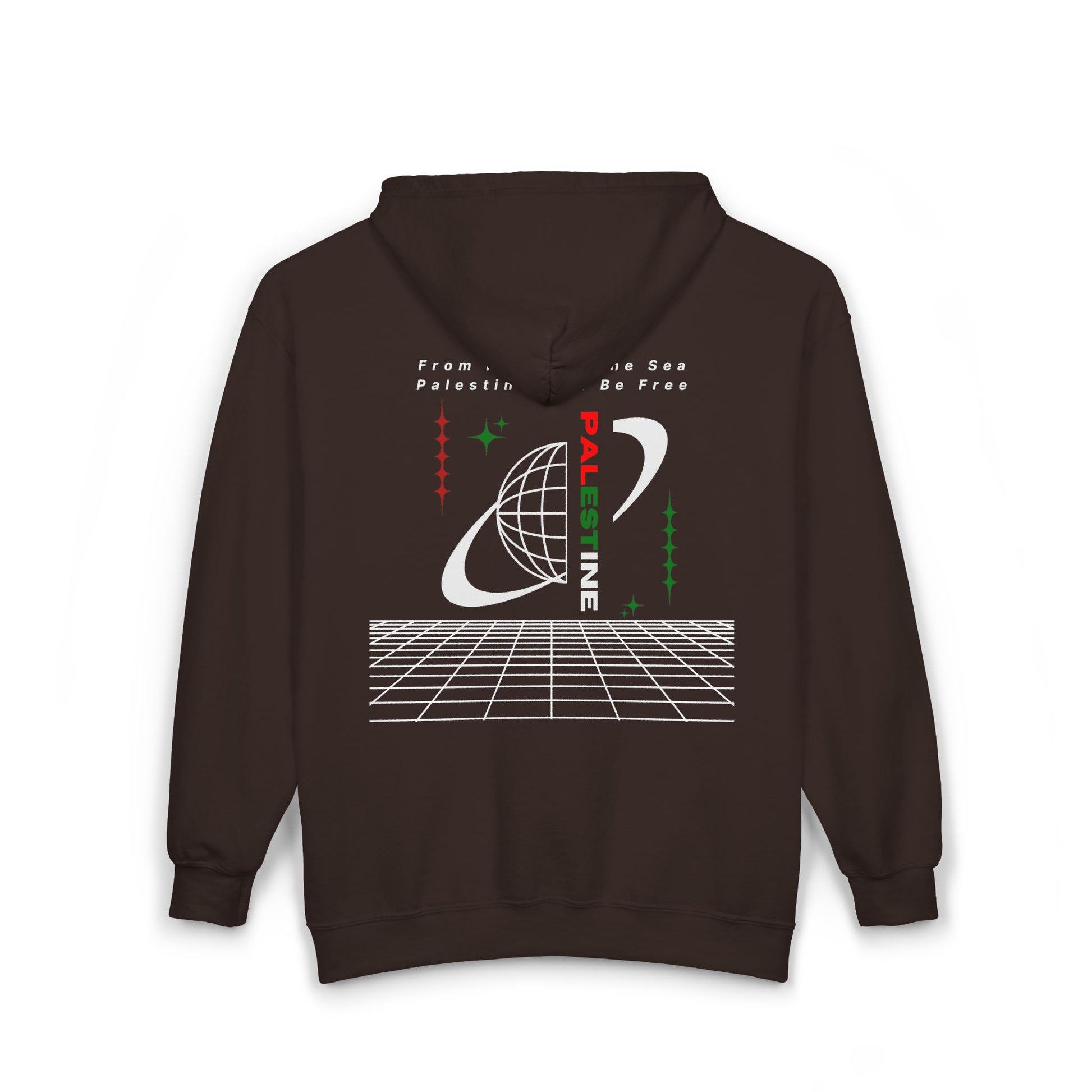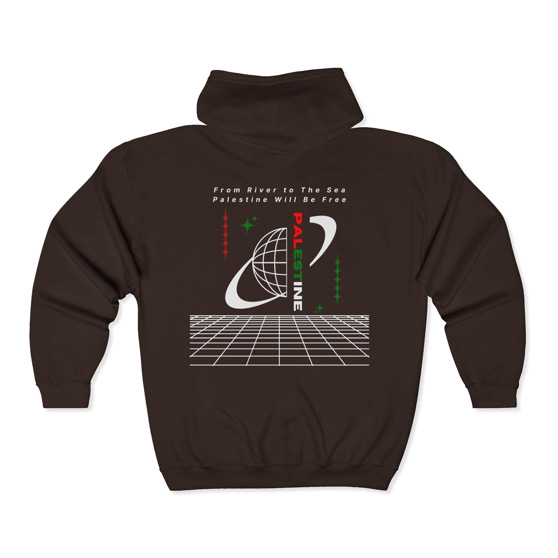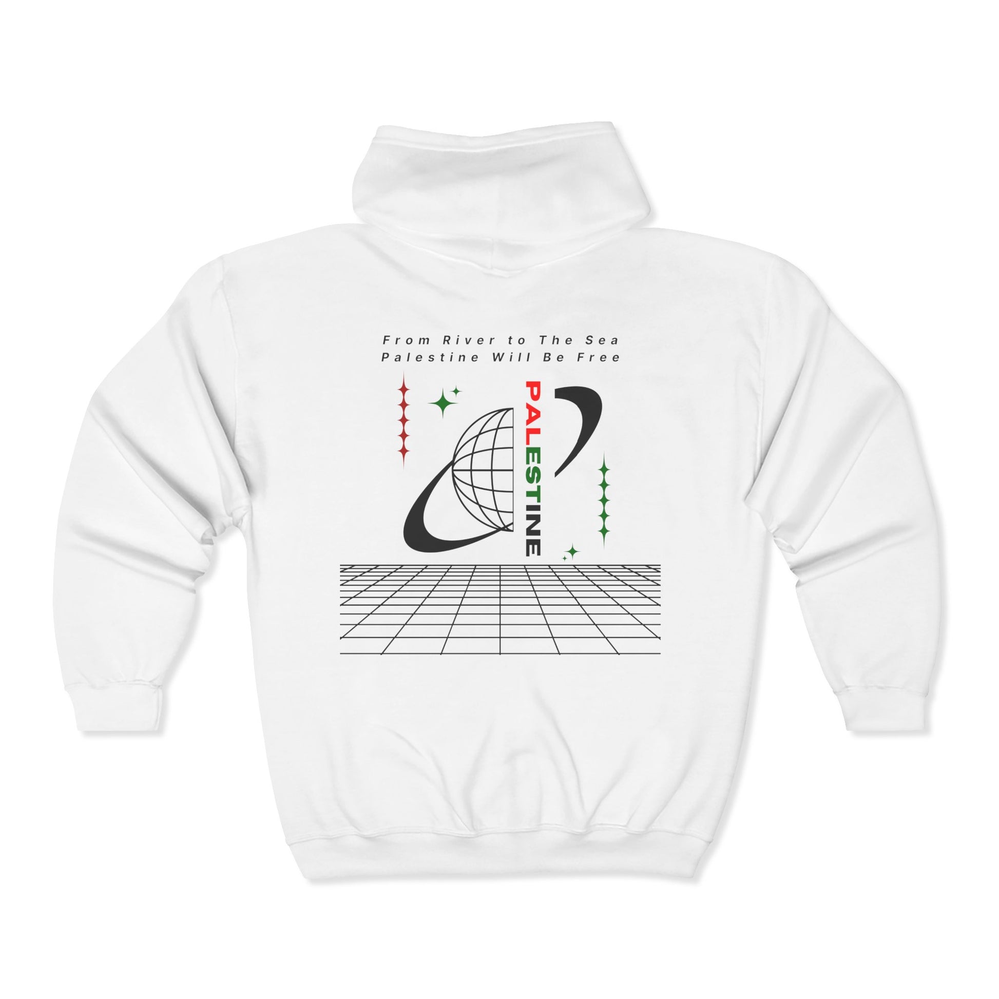 Stay warm while making a bold statement with our Full Zip Hoodie From the River to the Sea, Palestine Will Be Free. Designed for comfort and impact, this hoodie features powerful pro-Palestine messaging alongside symbolic elements like the keffiyeh pattern, watermelon emblem, and olive branch of peace.